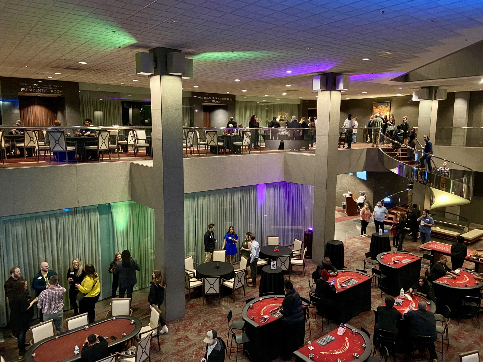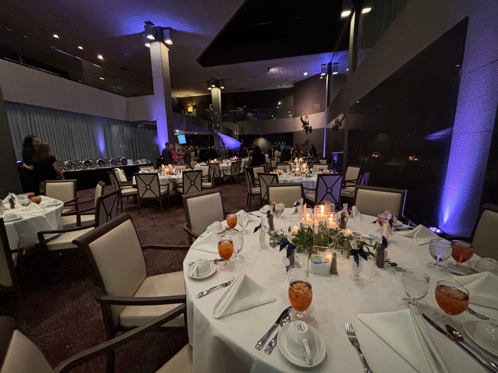 Located on the first floor of The Harbert Center, the sky-lit Atrium provides a striking backdrop for cocktail hours, receptions, and social gatherings. The space accommodates up to 80 guests seated, 140 theater-style, or 200 guests for a reception, making it an ideal option for both standalone events and pre-function gatherings.