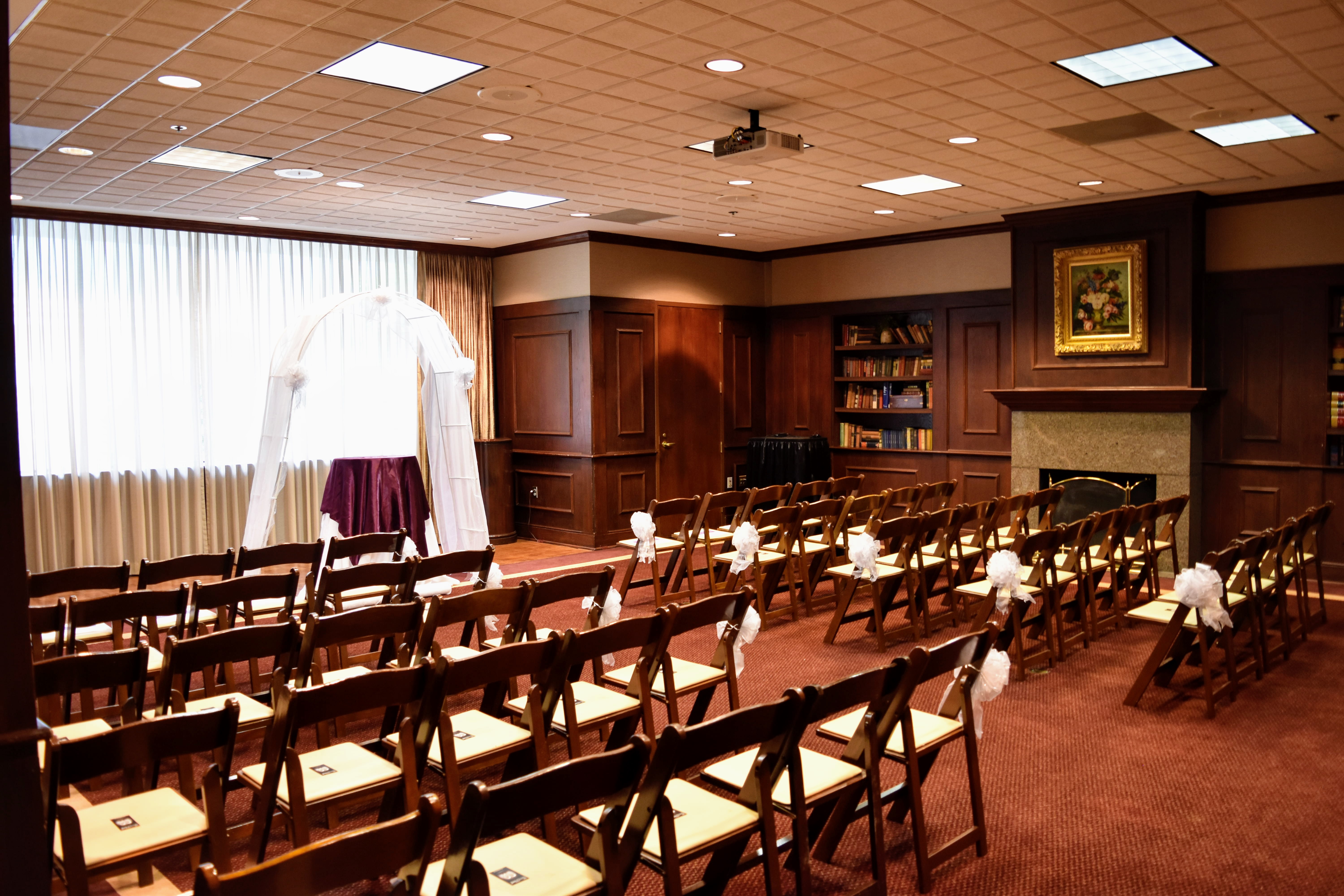 Located on our second floor, Dunn-French Library provides a beautiful backdrop for a business luncheon, board meeting, seminar, or small reception. It features a faux fireplace centered between mahogany bookcases, and a wet bar perfect for a coffee station or serving cocktails. Other features include complimentary Wi-Fi, a ceiling mounted screen, and a 4,000 lumen WXGA projector.